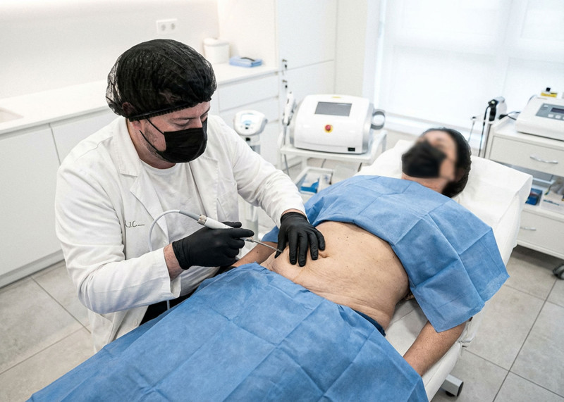 Im Rahmen der Behandlung wird über kleine Hautzugänge eine feine Laserfaser in das Fettgewebe eingebracht. Der eingesetzte Laser arbeitet mit einer speziell abgestimmten Wellenlänge, die das Fettgewebe lockern kann. Gleichzeitig kann die abgegebene Energie die Hautstraffung unterstützend beeinflussen, indem sie die Gewebespannung positiv fördert. Das vorbereitete Fettgewebe wird anschließend schonend abgesaugt.